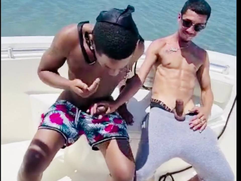 Ils prennent tous les trois un bateau en mer pour plonger et jouer avec leurs bites au soleil. Ils les suceront et se baiseront enfin l'un l'autre !