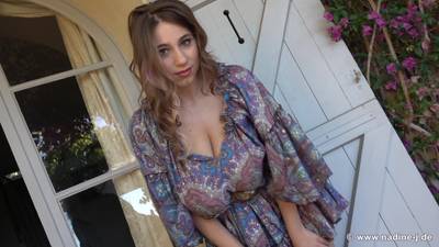 C'est une scène sans sexe, mais très excitante ! Une jeune fille sort dans le jardin et montre ses fantastiques et énormes seins naturels. À voir absolument !