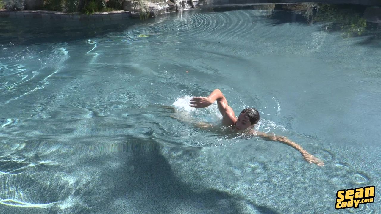 Kolby est un vrai hunk ! Il nage, bande et se branle la bite vite jusqu'à ce qu'il éjacule. Plus tard, il recommence, en caressant son torse chaud et musclé.