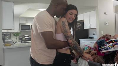 Un homme noir musclé avec une grosse bite prend Luna Lovely. La salope suce avidement sa bite à gorge profonde et se fait baiser par derrière et en cowgirl.