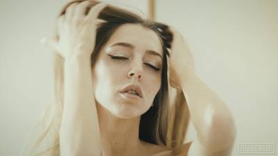 Jolie blonde aux petits seins, la jeune Rachel Rivers, masturbe doucement sa chatte serrée, tout en changeant de sous-vêtements.