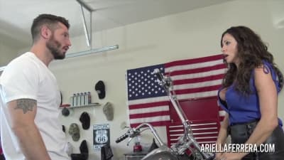 Ariella Ferrera, une femme aux gros seins, ne veut pas payer les réparations de sa moto et baise le mécano.