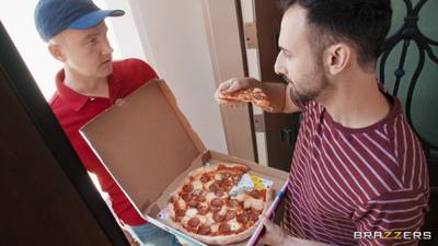 Maddy May est coincée dans une machine et son mari essaie de l'aider mais le livreur de pizza arrive. Il mange sa pizza et le livreur l'aide en la baisant.