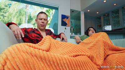 Molly Little suce son petit ami sur le canapé jusqu'à ce que son beau-père Mick arrive et s'assoit avec eux. Molly s'empresse de lui faire un footjob.