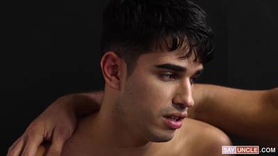 Un daddy épie le mec en train de se toucher par le biais d'une caméra ! Une fois sa bite sortie, il entre dans la pièce et le convainc de se laisser baiser.