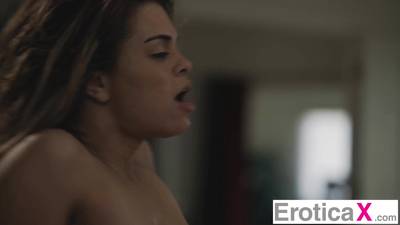 Charles Dera gifle les petits seins de la brune et la baise à fond