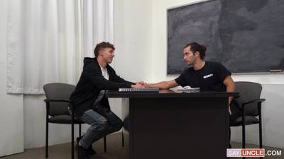 Ce minet s'est fait prendre et pour que le gars de la sécurité efface la vidéo, le minet doit sortir sa bite et le baiser à vif !