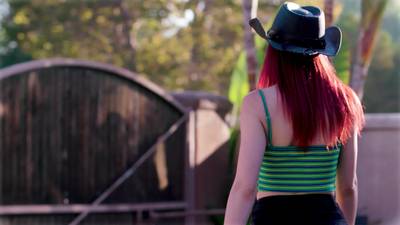 Kelly Caprice cowgirl rousse aux gros seins domine son cowboy