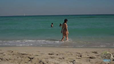 Elle n'était jamais allée sur une plage nudiste auparavant. Elle en profite pour se filmer en selfie, montrant ses seins à l'air sans pudeur.