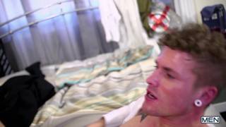 Le réalisateur donne à ce brun musclé des indications pour qu'il montre ses gros muscles ! Il enlève ensuite ses vêtements et s'assoit en se masturbant en solo.