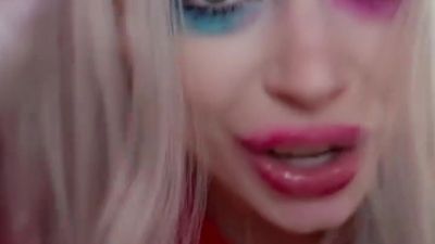 Belle blanche aux gros seins se fait tringler très fort dans le cul et suce trop bien. Cosplay harley quinn ultra bandant qui finit en ejac interne.