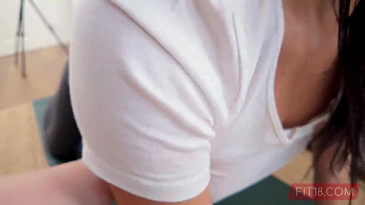 Dolly Orchid casting fitness pour modéliser des vêtements de sport. Elle montre son corps incroyablement fit et chaud, puis suce la bite de son entraîneur.