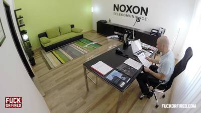 Cette jolie blonde se rend à un entretien et elle va devoir montrer son grand intérêt en suçant la queue de son futur patron et la salope accepte.