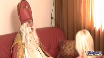 Je savais que le père noël était un gros cochon ! Aujourd'hui il va troncher copieusement une blondasse de 19ans qu'il baise en profondeur !