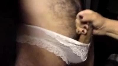 Cette homme poilu se retrouve avec la culotte de sa femme et s'amuse avec ! Il prend son pied et on adore le voir ainsi en plein action !