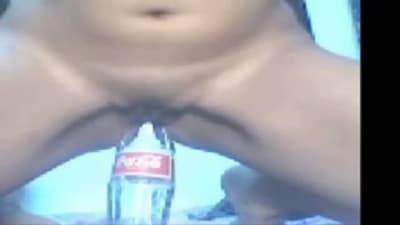 Cette jolie brunette se masturbe devant sa webcam mais pour ressentir plus de plaisir, elle s'empale sur une bouteille de soda en verre.