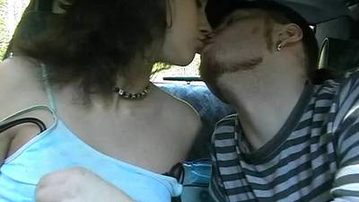 Tanya se déshabille dans la voiture, elle se fait lécher les seins et se baisse pour sucer toute la queue d'Andrew