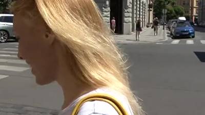 Cette jolie touriste blonde en visite a Prague se fait penetrer dans une foret pour unpeut l'argent