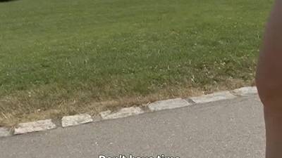 Une jolie blonde faisant une promenade en rouler accepte un plan baise avec un inconnue dans la parc pour quelque billet .