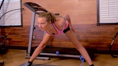 Cette blondasse maigrichonne fais du sport à poil et finis par se doigts sur un trampoline et jouir