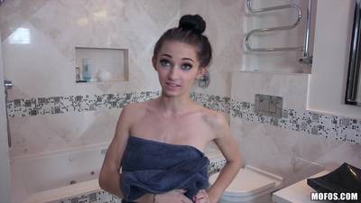 En visite chez un pote, la petite se prépare pour une douche quand celui ci lui propose plutôt de tâter de sa bite.La surprise passée,elle dit oui