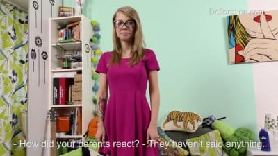 Cette petite jeune vient tout juste d'avoir 18 ans et elle va se masturber devant nous après nous avoir montré sa magnifique chatte rasée.