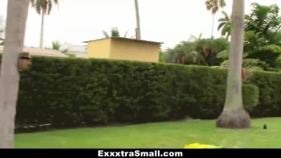 Cette petite blonde a la chatte bien étroite pour cette grosse bite. mais elle va se la prendre bien profond quand même au bord de la piscine