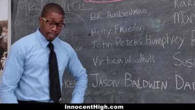 Jeune teen au petit sein baise son prof a la fin de son cour par une belle fellation puis se fait demonter la chatte.