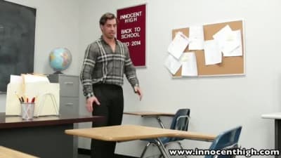 Après avoir eu une mauvaise note cette élève va plaquer son prof au mur et le sucer puis se faire enculer