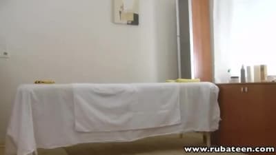 Une fois n'est pas coutume, cette jeune asiat, aux gros seins, va se faire masser par un jeune homme avant de le chevaucher
