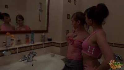 Ces 2 jeunes femmes brunes vont bien se faire plaisir dans la baignoire en se caressant et en se doigtant .