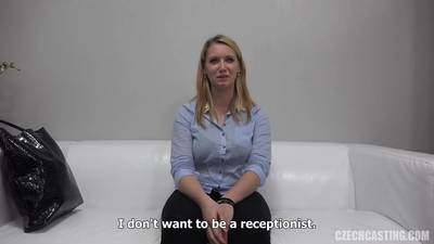 Cette très jolie jeune femme blonde un peu ronde passe un casting porno car elle aime le sexe et aimerait en vivre