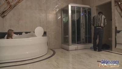 Elle dans un jacuzzi, lui sous la douche, attirer l'un part l'autre, même malgré leur différences d'age, elle lui fit une belle pipe.