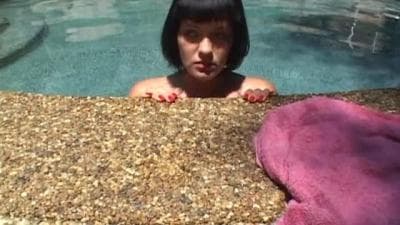 Une belle blonde se fait bouffer la vulve au bord de la piscine pour ensuite sucer et se faire enfiler par un gode ceinture