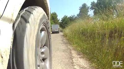 Cette teen française avec une paire de seins vraiment géniaux nous fait découvrir ses nichons dans une balade en voiture en provence